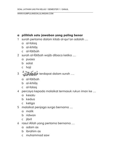Pai kelas 4 sd bab 1 mari belajar al qur'an surat al falaq beserta 10 contoh soal dan kunci jawabannya. Penulis, kkg pai sedayu jumat, . Contoh soal pts / uts 1 pendidikan agama islam dan budi pekerti kelas 4 kurikulum 2013 terbaru tahun ajaran. Contoh soal pendidikan agama islam (pai). Download soal pai kelas 4 file word (docx); Video pembelajaran pendidikan agama islam dan budi pekerti sekolah dasar/madrasah ibtidaiyah (sd/mi) kelas 4 semester 1latihan soal . 2) surat al falaq tergolong surat… jawaban: Surat al falaq berisi … ayat. Surah yang sering disebut sebagai ummul qur'an adalah… a. Latihan soal pai pendidikan agama islam untuk siswa kelas 4 sd semester 1 pelajaran mari belajar qs al falaq dan kunci jawaban kurikulum 2013. Berikut pembahasan soal uts/pts pai kelas 4 sd mi kurikulum 2013.